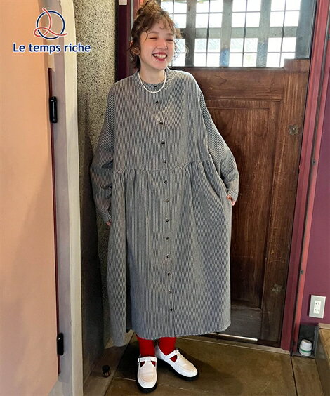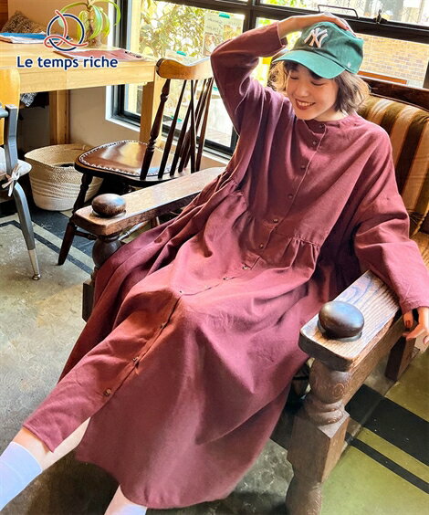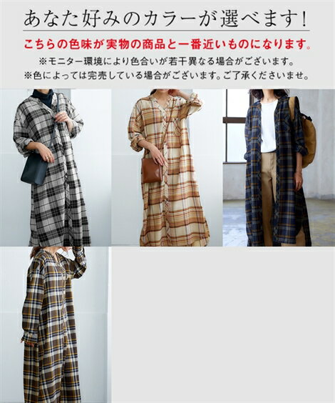 シャツ ワンピース ロング マキシ レディース チェック柄 ソフト起毛 グレー系/ネイビー系/ブラウン系/ベージュ系 S/M/L ニッセン nissen