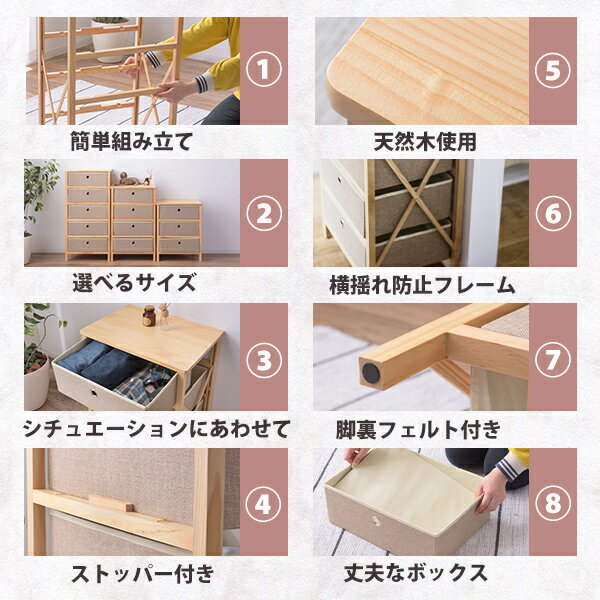 ◆商品スペック 【サイズ(cm)】 全体:幅48 × 奥行34 × 高さ60 【材質】 天然木(パイン) ラッカー塗装 ポリエステル 【小箱入】 ■組立式 【重量(kg)】 4.2 ◆備考 こちらの商品はお客様組み立てとなります。