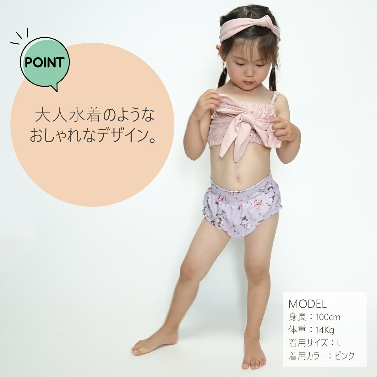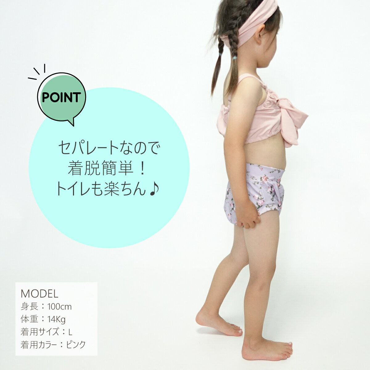 【サマーSALE 50%OFF! 2200円→1100円】キッズ 水着 女の子 セパレート ビキニ 花柄 リボン 2022年 新作 子供 こども かわいい 上下セット フラワー ヘアバンド セット 小学生 幼稚園 保育園 おしゃれ くすみカラー スイムウェア 海 プール 川