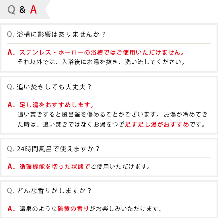 ・お湯が冷めたときは、追い炊きせず、足し湯をおすすめします。