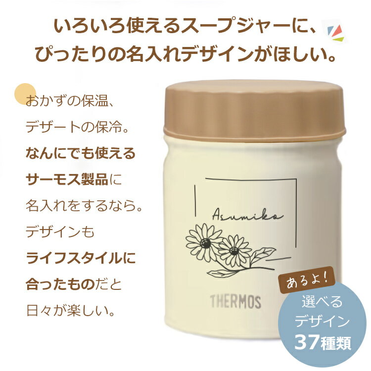 名入れ サーモス 真空断熱 スープジャー 400ml 全3色 THERMOS イニシャル フラワーデザイン 箱入り ネーム 名前 入り 保温 保冷 スープポット ランチ お弁当 シンプル かわいい おしゃれ スープ 弁当 味噌汁 保温容器 【10off】